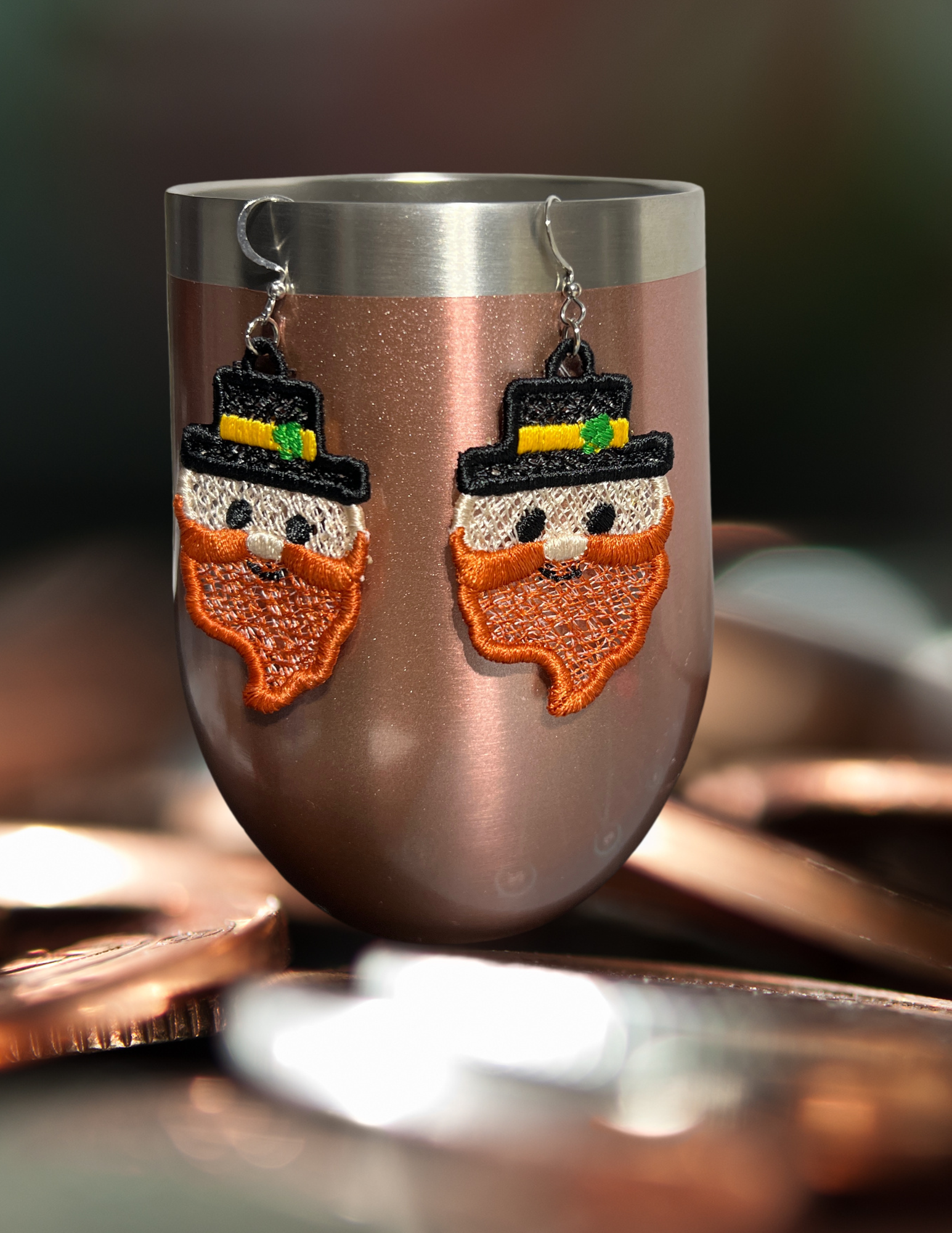 Earrings - Embroidered Leprechaun